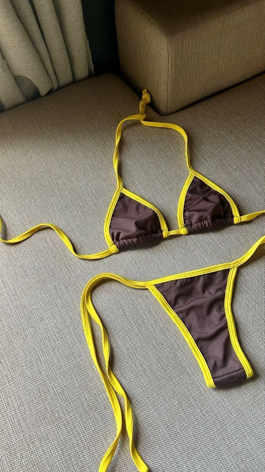Bikini combinada de lycra tricot. Corpiño triangulito movible y colaless en juego. (ACLARAR SI BOMBI EN V O PARA ATAR)