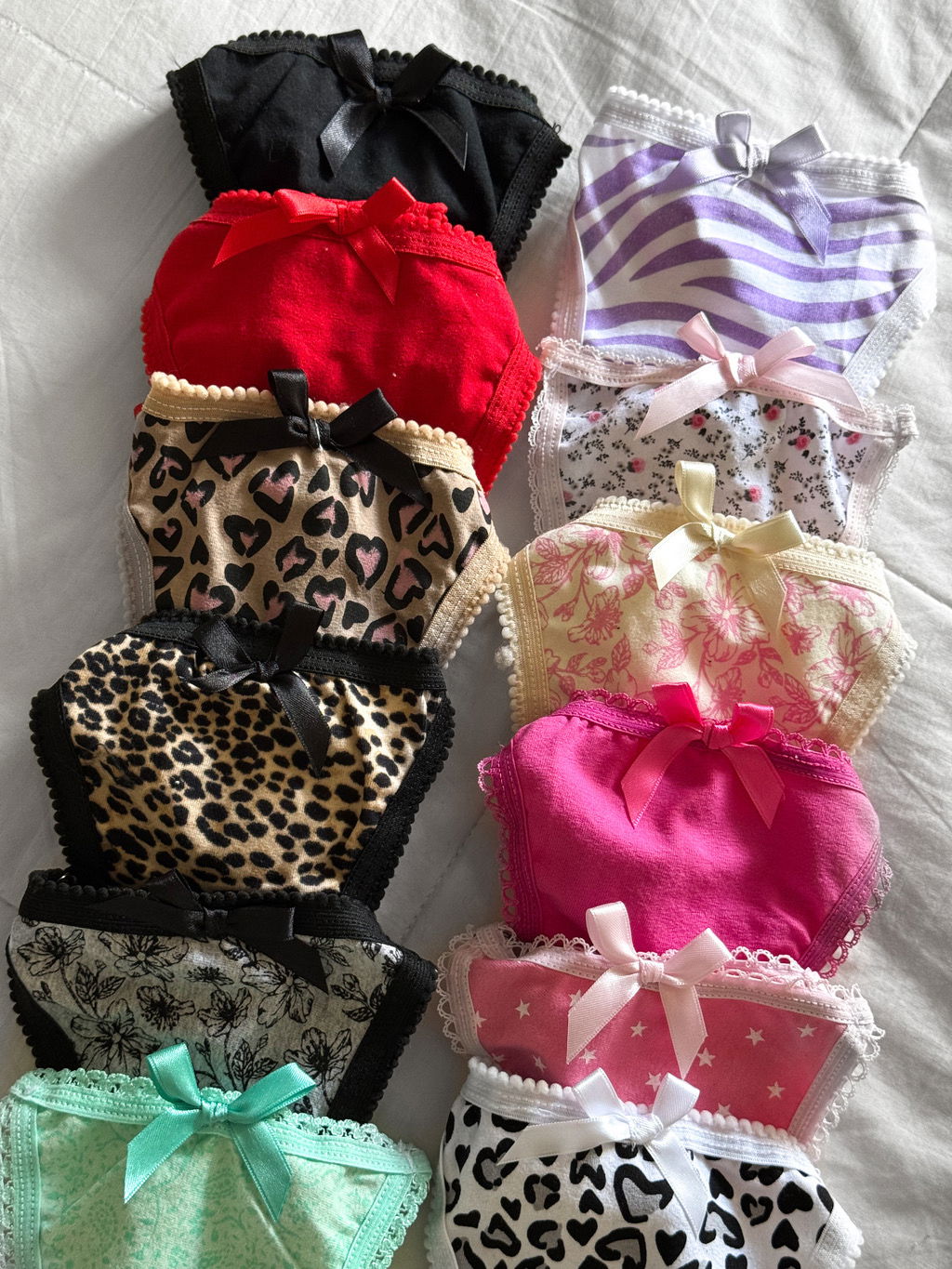 Incluye 12 bombachas de algodón, súper cómodas, con estampas surtidas y diseño delicado para acompañarte todos los días.